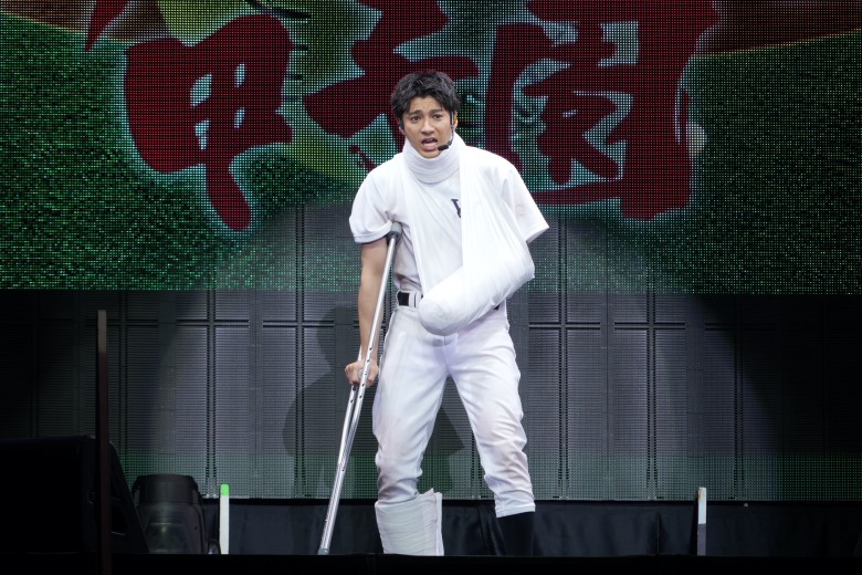観客からの声援を制した山田は、高校野球の選手さながら自分を奮い立たせる掛け声・通称「済美声」を気合十分に響かせて、喉の復活を堂々宣言。番組で作ったオリジナルソング「なかま」のブラスバンドバージョンにのせて、マスコットのドラゴンちゃん・フェニックスくんを引き連れながら「月曜オールナイトニッポン野球部」のプラカードを持って横浜アリーナの外周をまわり、「山田裕貴のオールナイトニッポン・ドラゴンフェニックス甲子園開幕です!!!」と気合一声でイベントをスタートさせた。