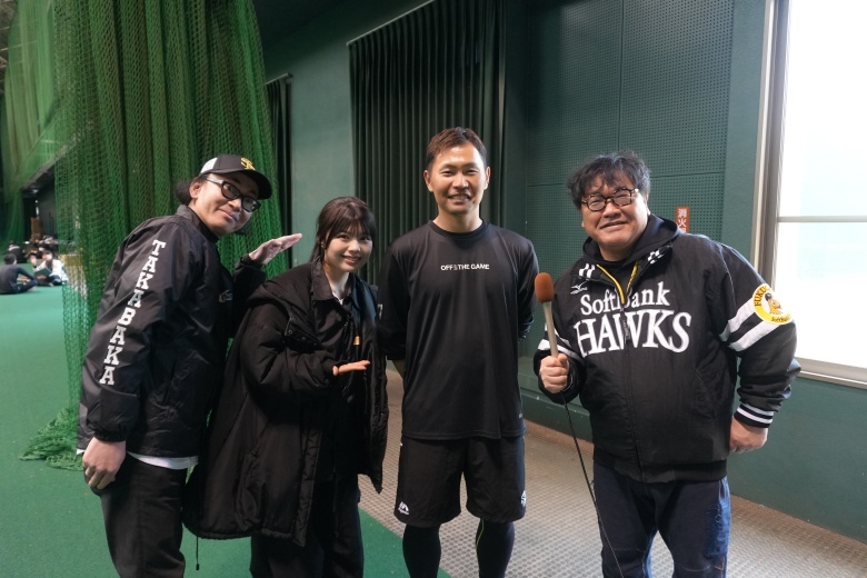 松田「番組に参加する前は一からのスタートでしたが、取材や企画を重ねる中で野球そのものがどんどん好きになり、今では毎日野球を見るのが当たり前の生活に変わりました。気づけばホークス関連の記事や情報を追うようになり、SNSのおすすめもホークスばかり流れてくるほど、"ホークス愛"が自然と深まったと感じています」