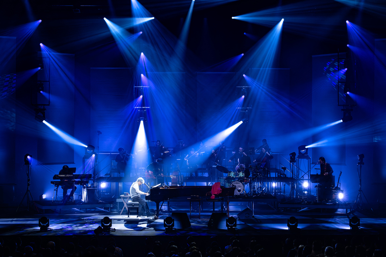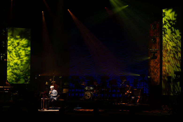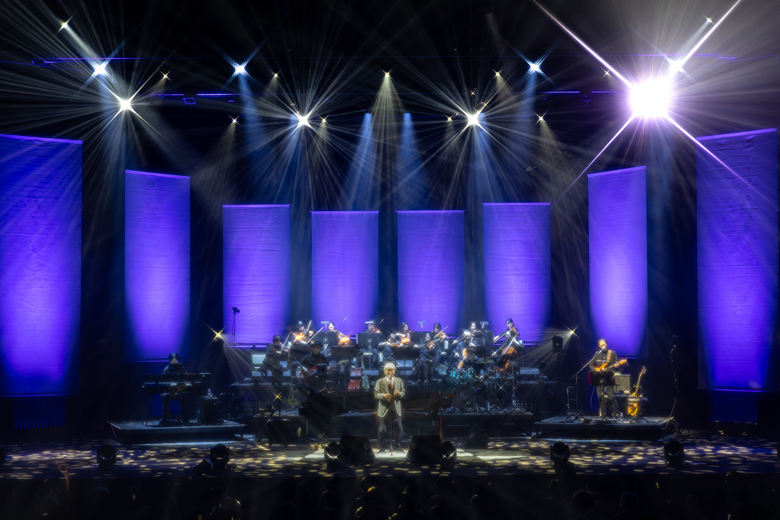 18:30にスタートしたコンサート、幕が開くとスリーピース姿の来生がステージに現れた。最初の曲はバンドに加わったストリングスパートも豪華な「明日物語」。ちょうど10年前、40周年記念のセルフカヴァーアルバム『夢のあとさき』に新曲として収録されていた楽曲である。前向きな詞がオープニングに相応しく、これから始まるコンサートへの期待が高まる。続いて2011年のアルバム『ひたすらに』から「針の雨」が歌われてから挨拶。50周年を迎えることの感慨と感謝が語られ、敬愛するギルバート・オサリヴァンのライブで力をもらったとのこと。その流れでオサリヴァンとの競作となった1991年のシングル曲「出会えてよかった」が歌われる。