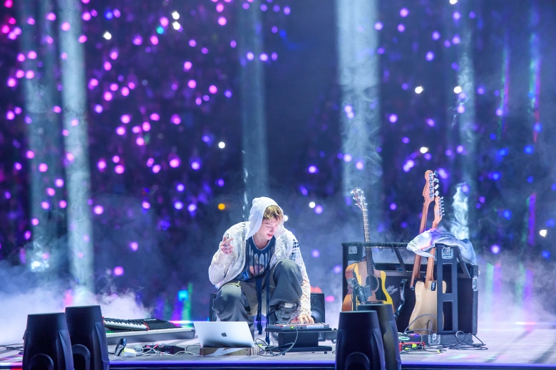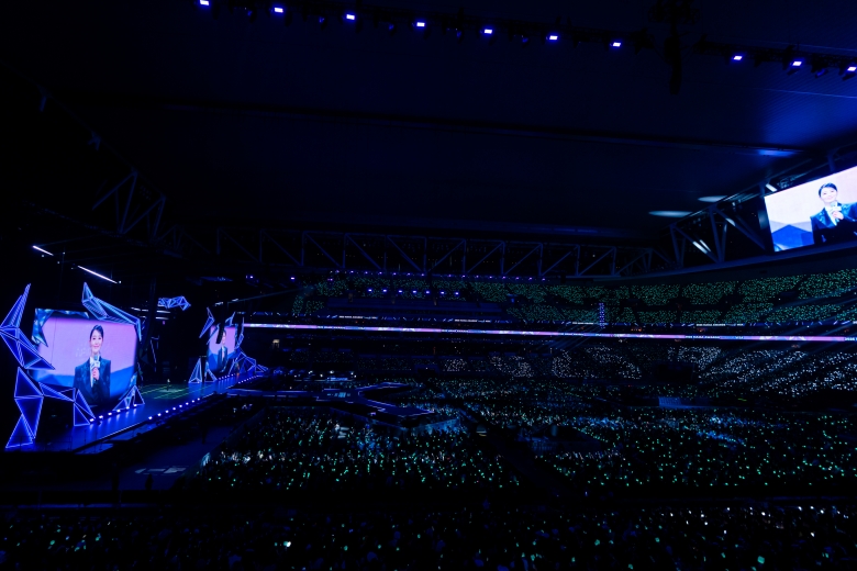 革のコスチュームをまとってのクールな登場から度肝を抜くと、シンセベースのサウンドがクセになるチルな楽曲「Dirty Work」では、囁くようなボーカルをはじめ、気だるげな表情やセクシーな振り付けで場内を魅了し、aespaらしい蠱惑的なオーラで会場を染め上げていった。
