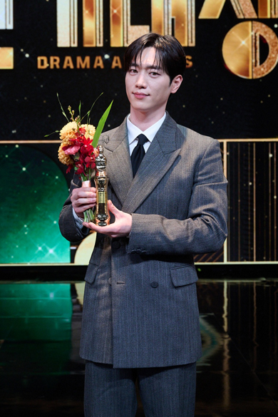 昨年の大晦日に行われた恒例イベント「2025 SBS演技大賞」(3月29日(日)にKNTVにて字幕版が日本初放送)では、大賞を受賞したイ・ジェフンの主演作「復讐代行人3~模範タクシー~」チームの活躍が目立った一方で、壇上で"キスシーン"を再現し会場を沸かせた「ダイナマイト・キス」のチャン・ギヨン&アン・ウンジン(ベストカップル賞受賞)を筆頭に、出席者はビジュ最強の美男美女揃い。