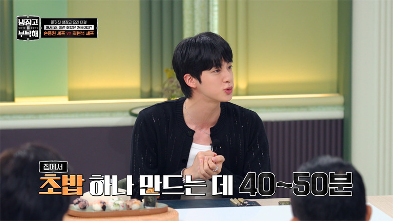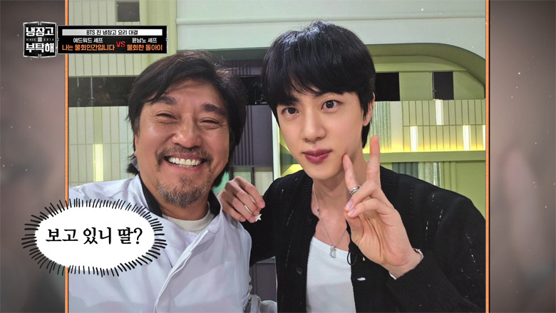 Netflixシリーズ「白と黒のスプーン ~料理階級戦争~」にも出演している韓国最高峰のシェフ軍団が、トップスターの自宅冷蔵庫にある食材を使って制限時間15分で料理対決を繰り広げるこの番組。冷蔵庫の中身を通してスターの私生活が垣間見られるとあって人気を集めており、2025年3月にはj-hopeも出演。今回コメディアンのチョ・セホと共に登場したJinもその例にもれず、"食"をきっかけに飾らない人柄が露わに...。
